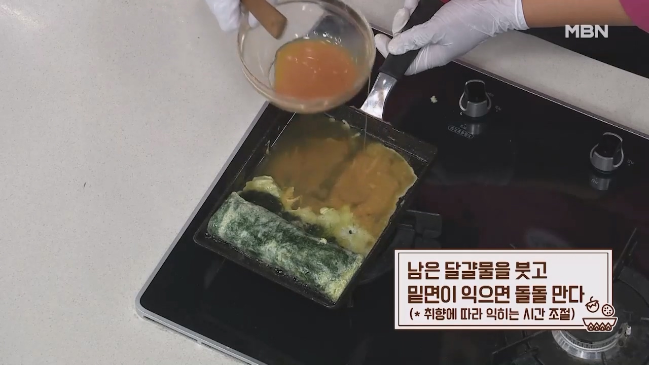 16. 남은 달걀물을 붓고 밑면이 익으면 돌돌 말아주면 매생이계란말이가 완성됩니다. (취향에 따라 익히는 시간 조절합니다.)