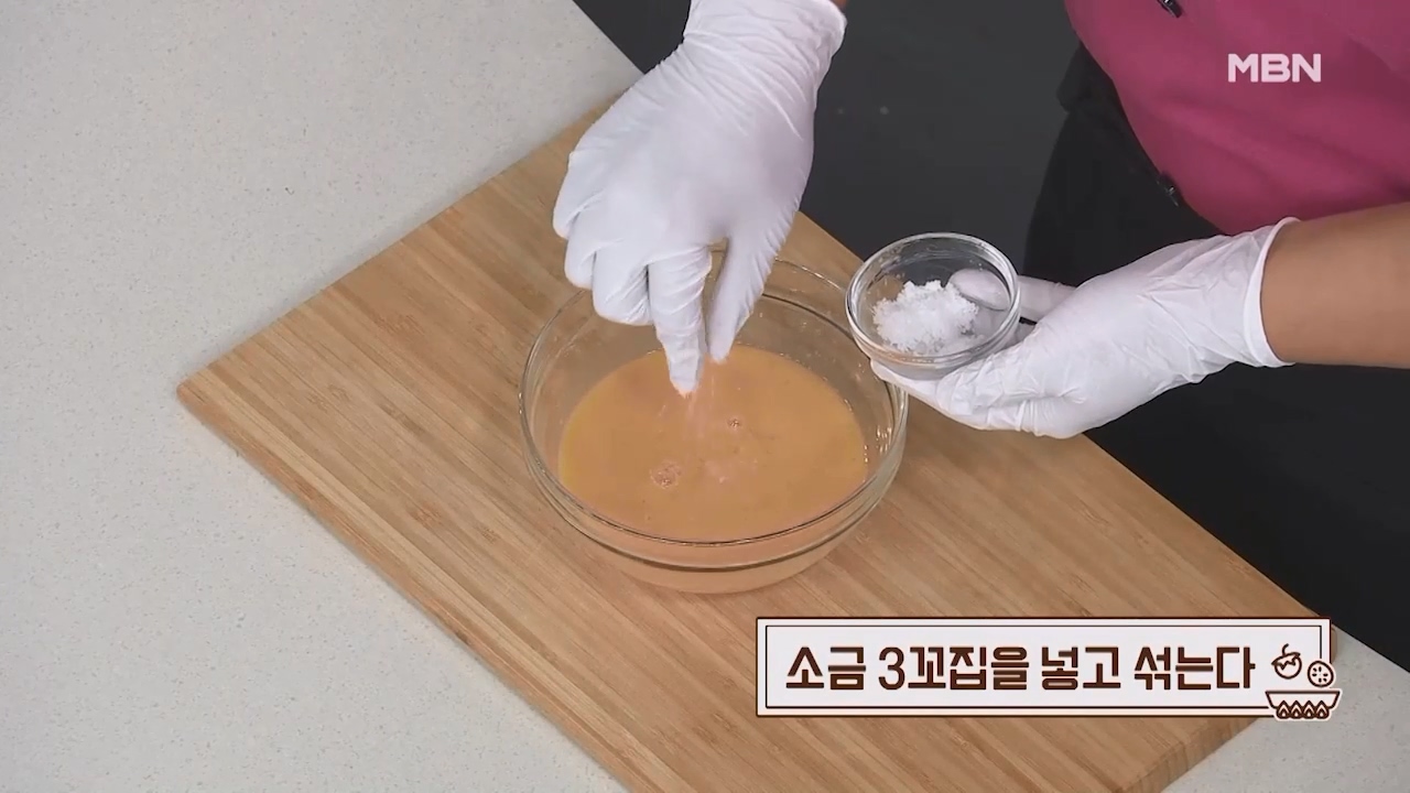 3. 소금 3꼬집을 넣고 잘 섞어줍니다.