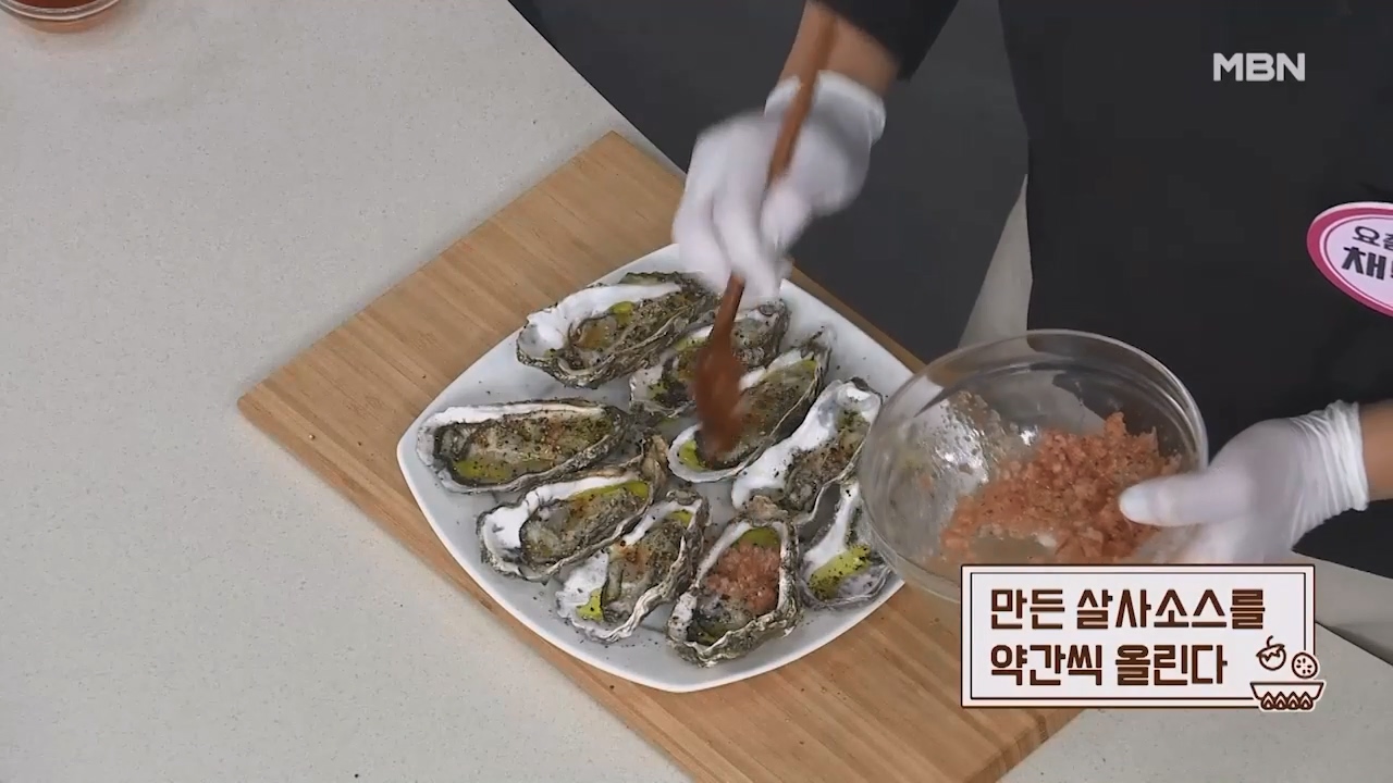 9. 만든 살사소스를 석화 위에 약간씩 올려주면 맛있는 굴세비체가 완성됩니다.