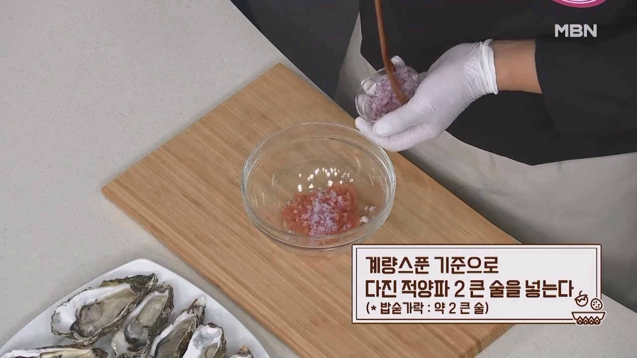 2. 계량스푼 기준으로 다진 적양파 2큰술을 넣습니다. (밥숟가락 약 2큰술)