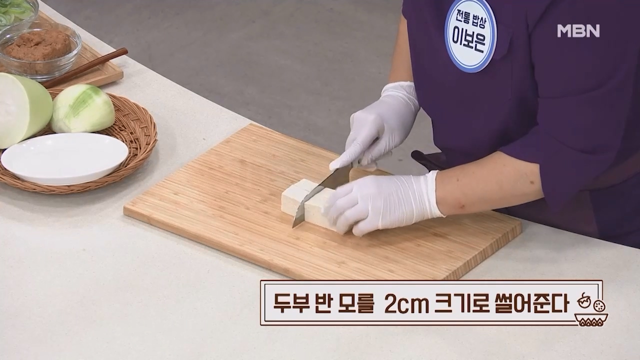 5. 두부 반모를 2cm 크기로 썰어줍니다.