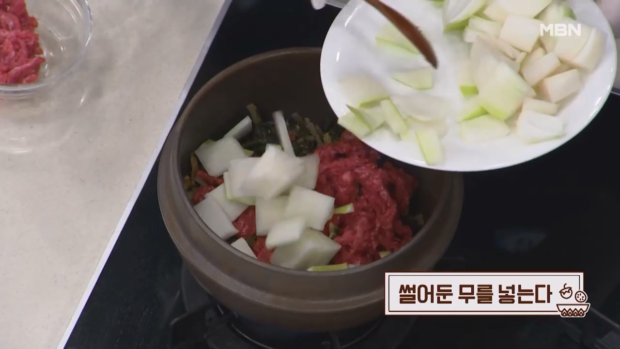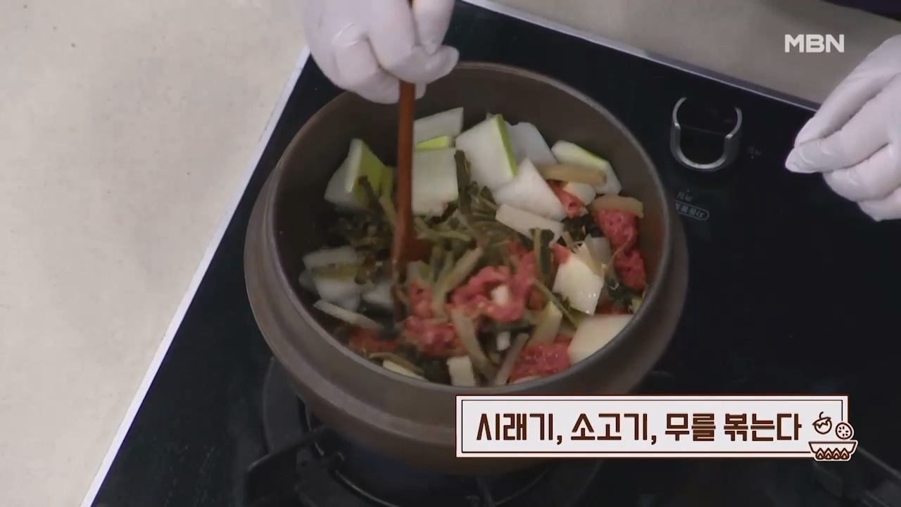 13. 시래기와 소고기와 무를 볶아줍니다.