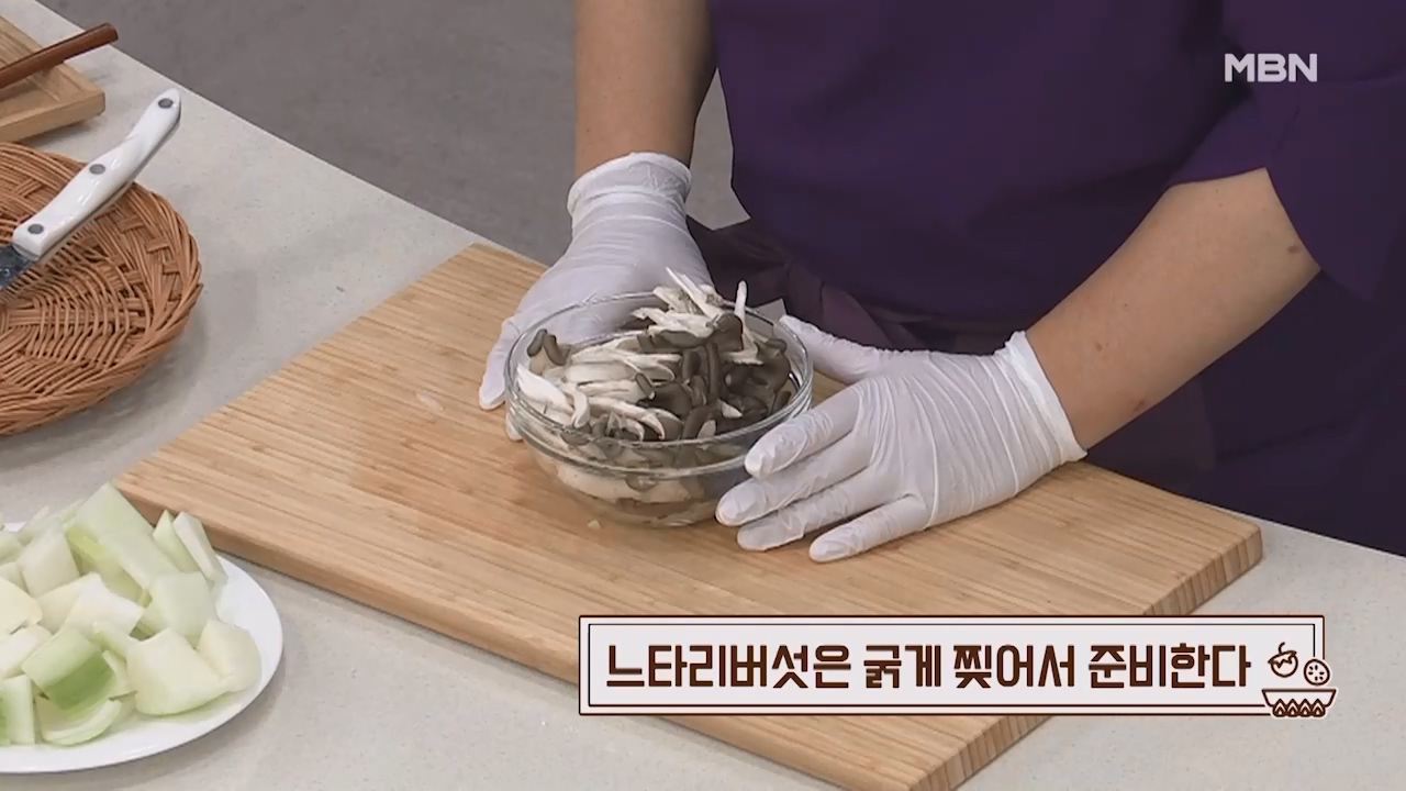 8. 느타리버섯은 굵게 찢어서 준비합니다.