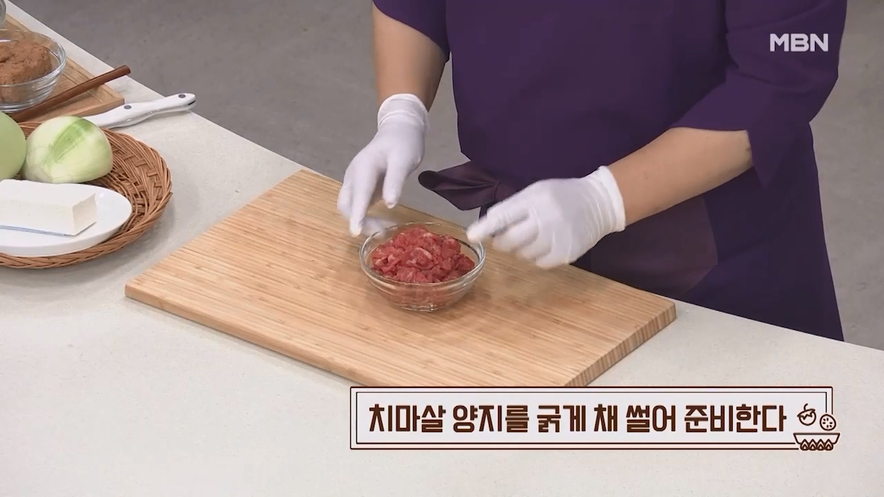 4. 치마살 양지 200g을 굵게 채 썰어 준비합니다.
