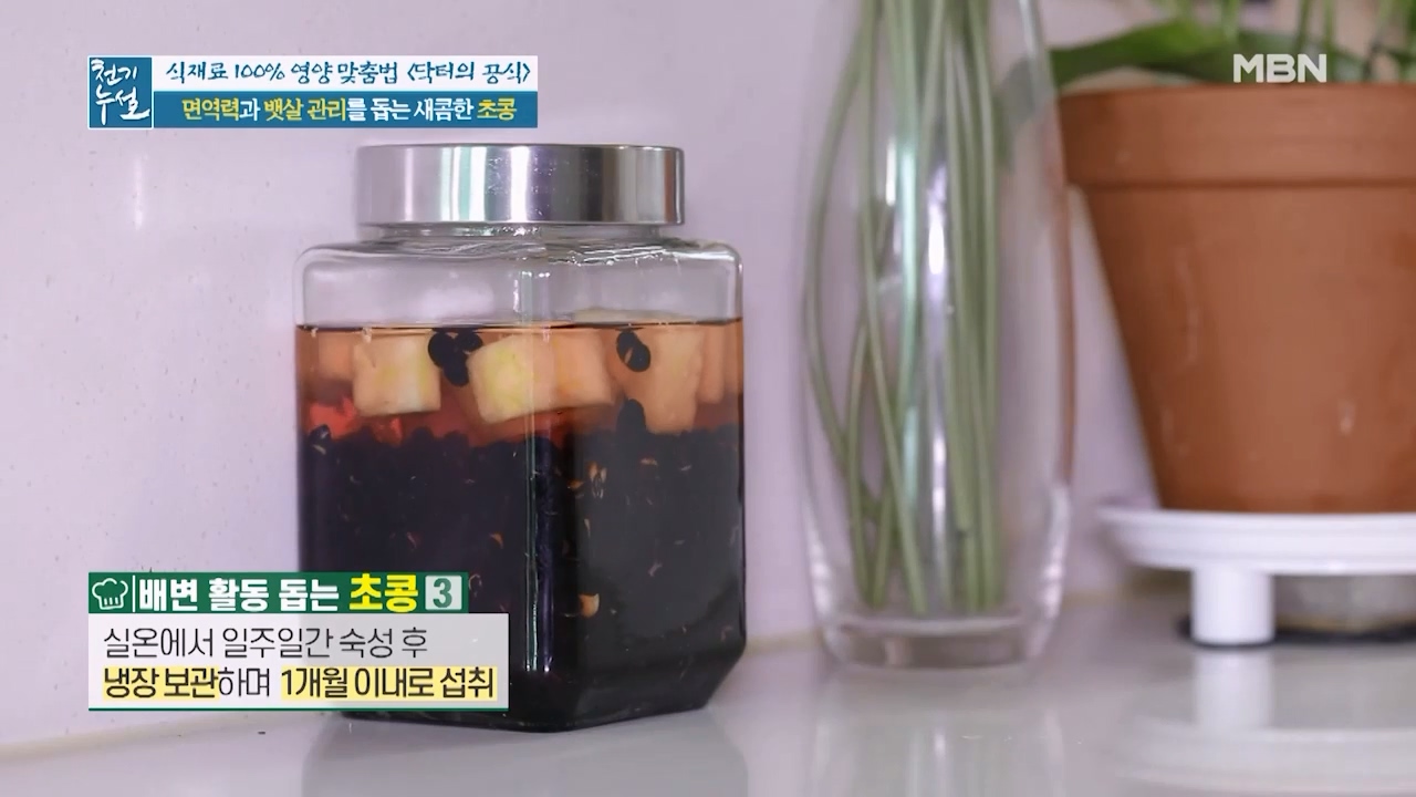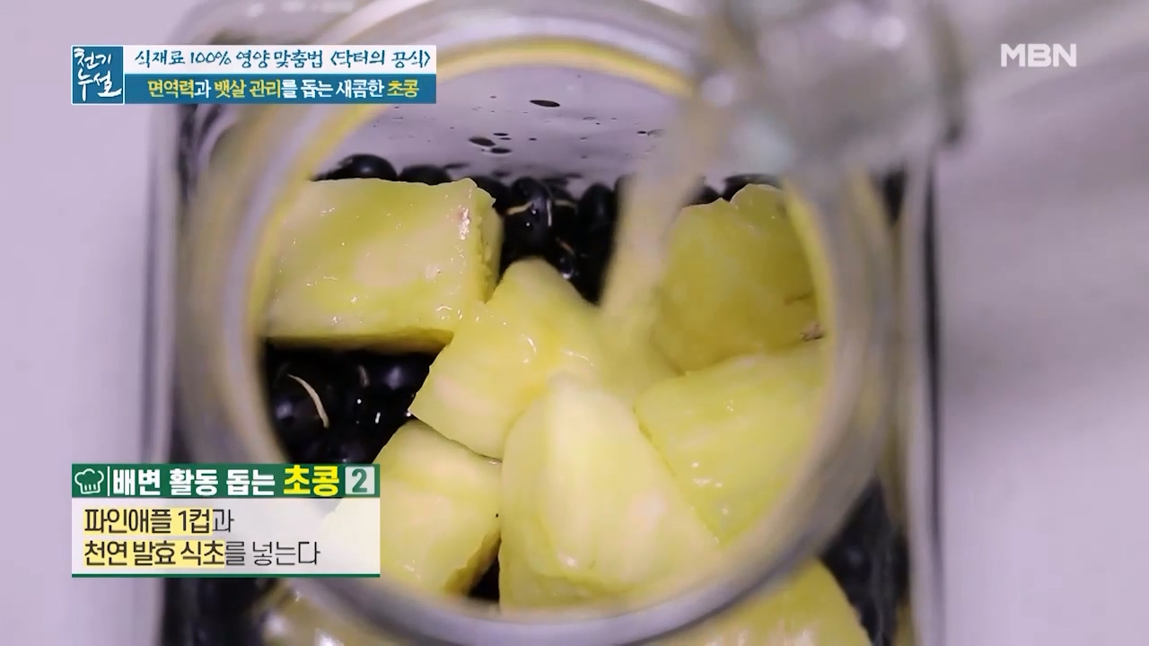천기누설에서 알려준 변비 완화와 뱃살 빼는데 좋은 초콩 만드는방법 알아보겠습니다. 콩은 밭에서 나는 소고기라 불릴 정도로 단백질과 식이섬유가 풍부한데 특히 검은콩에는 항산화 효능을 가진 안토시아닌과 글리시테인 성분이 풍부해 신진대사를 원활하게 도와 면역력을 높여주고 뱃살의 원인이 되는 내장지방의 축적을 억제하는데 도움을 줄 수 있다고 합니다. 건강에 좋은 검은콩을 식초에 넣어 만드는 초콩으로 섭취하면 소화흡수가 잘되고 배변활동을 도와줘 뱃살 제거에 더 도움을 준다고 합니다.