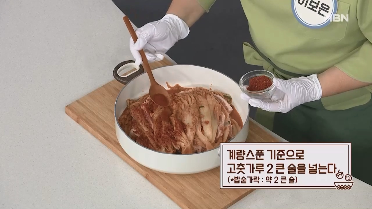7. 계량스푼 기준으로 고춧가루 2큰술을 넣습니다. (밥숟가락 약 2큰술)
