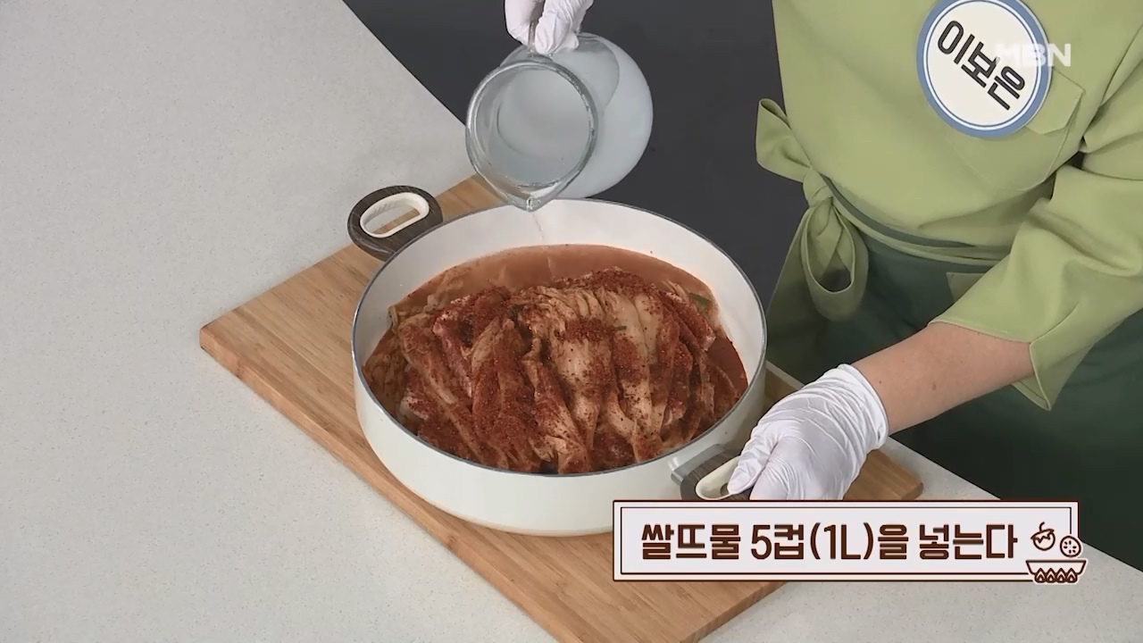 9. 쌀뜨물 5컵 (1리터)을 넣습니다.