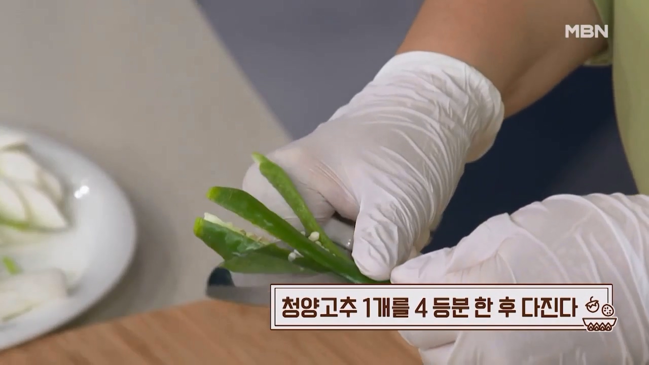 11. 청양고추 1개를 4등분 한 후 다져줍니다.