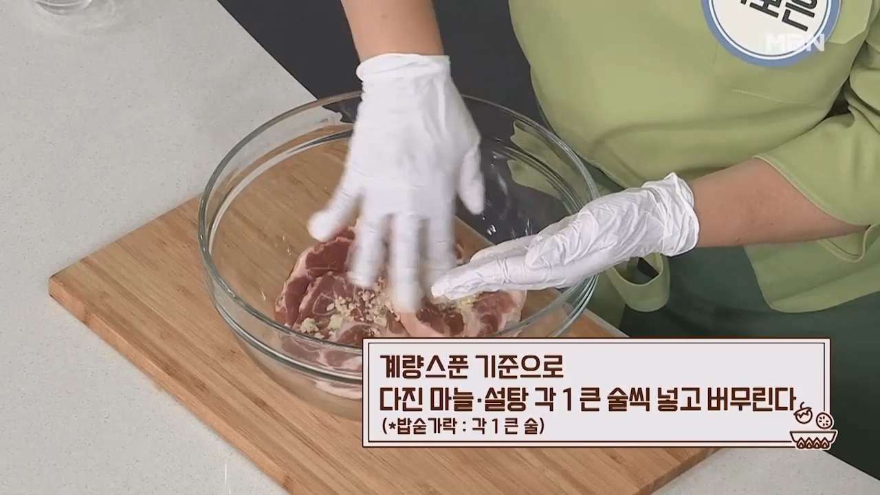 4. 계량스푼 기준으로 다진 마늘 1큰술, 설탕 1큰술을 넣고 버무려 줍니다. (밥숟가락 각 1큰술)