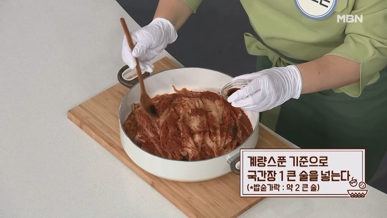 8. 계량스푼 기준으로 국간장 1큰술을 넣습니다. (밥숟가락 약 2큰술)