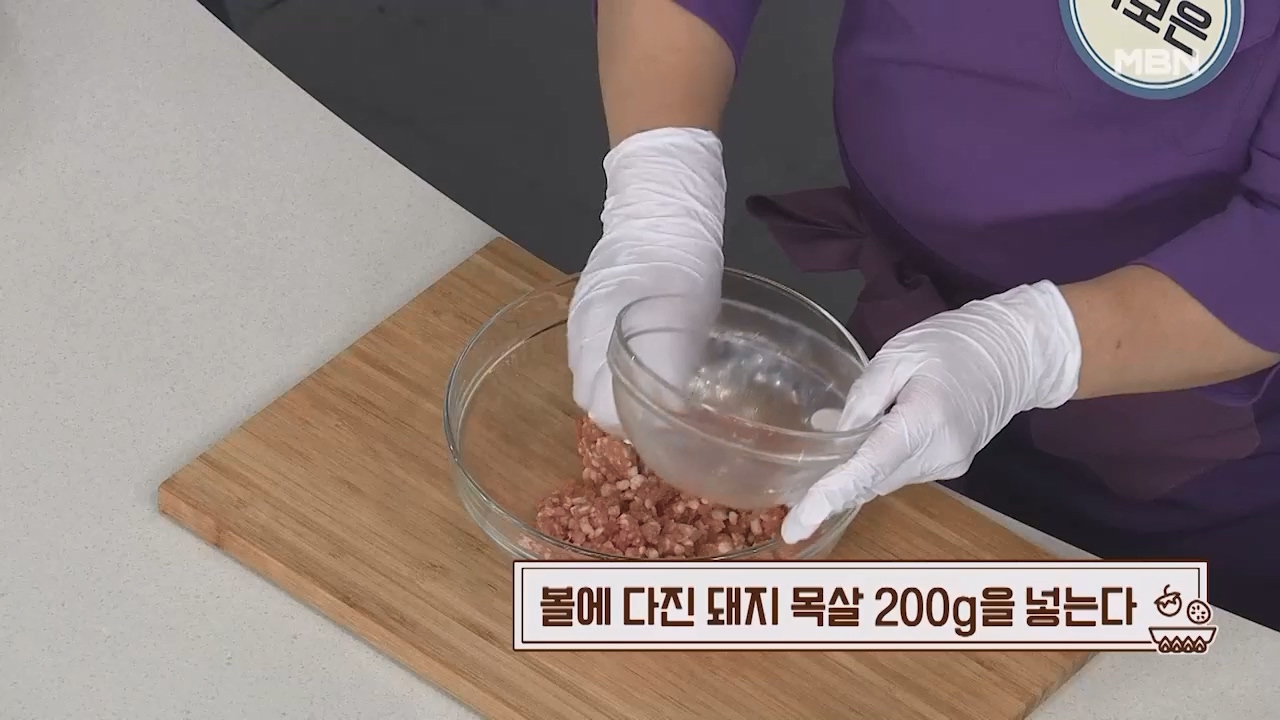4. 볼에 다진 돼지 목살 200g을 넣습니다.