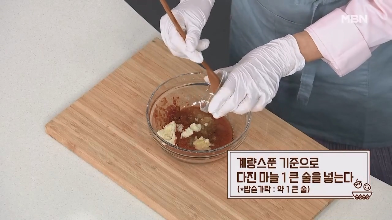 14. 계량스푼 기준으로 다진마늘 1큰술을 넣습니다. (밥숟가락 약 1큰술)