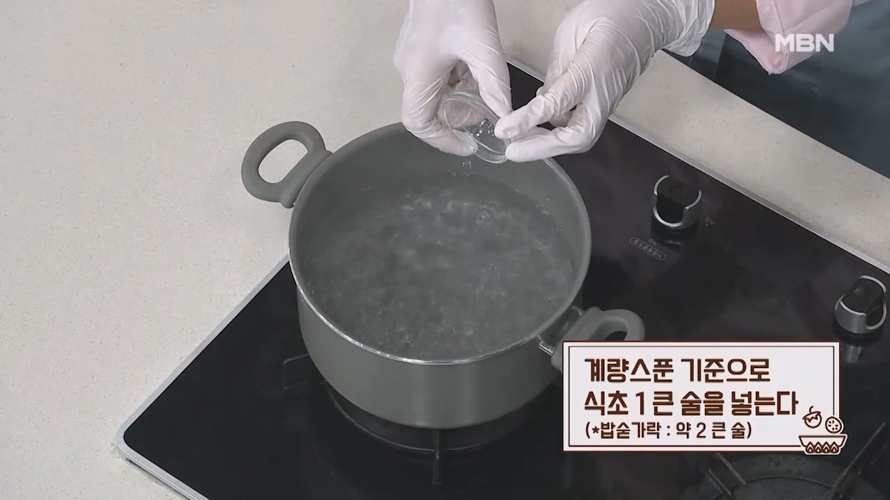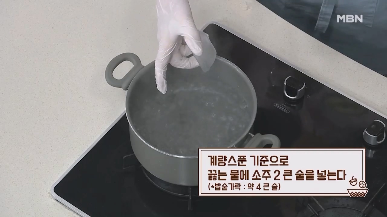 1. 계량스푼 기준으로 끓는 물에 소주 2큰술을 넣어줍니다. (밥숟가락 약 4큰술)
