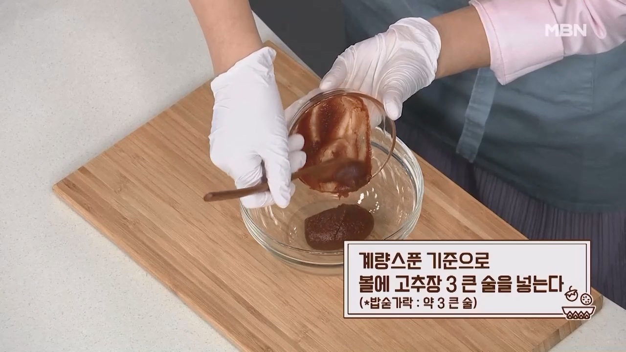 8. 계량스푼 기준으로 볼에 고추장 3큰술을 넣습니다. (밥숟가락 약 3큰술)