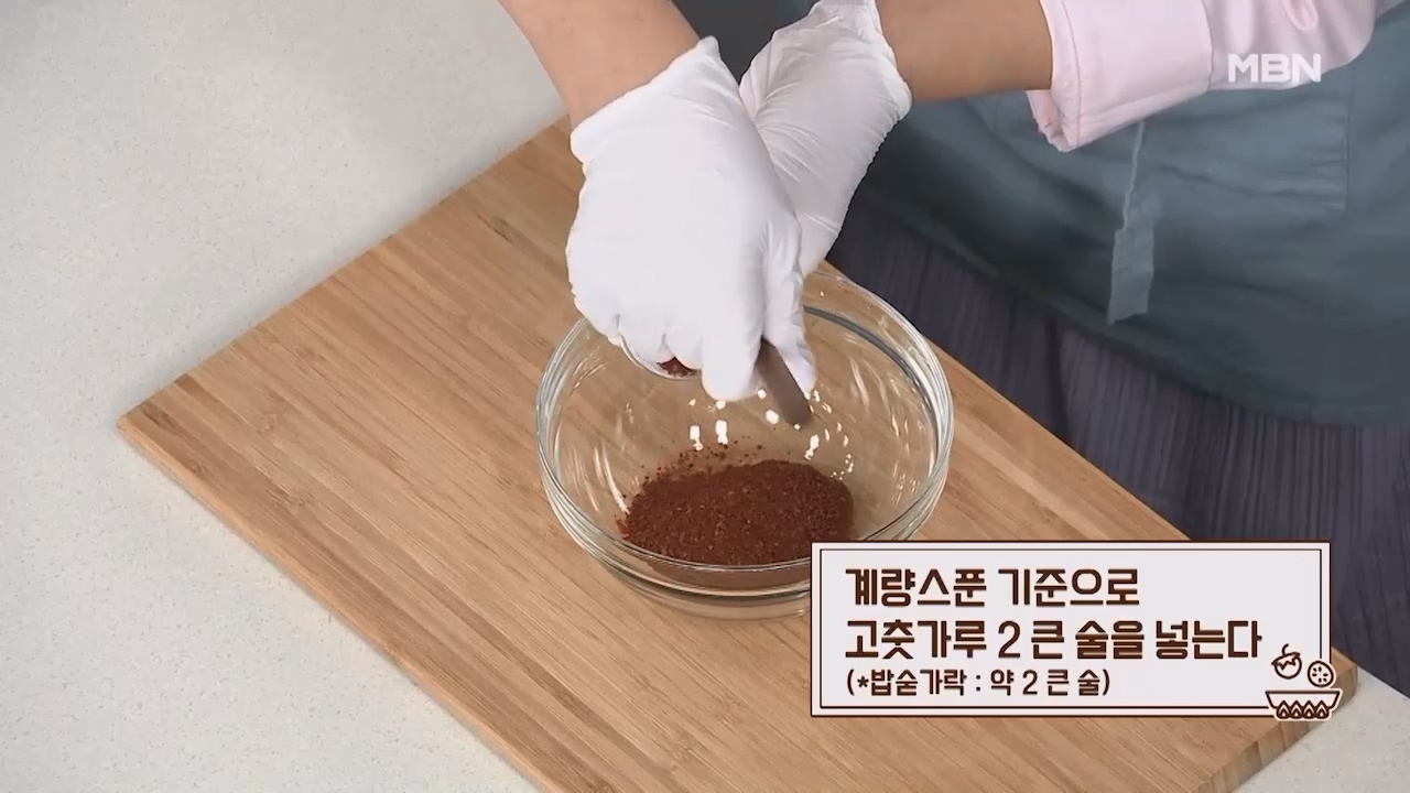 9. 계량스푼 기준으로 고춧가루 2큰술을 넣습니다. (밥숟가락 약 2큰술)