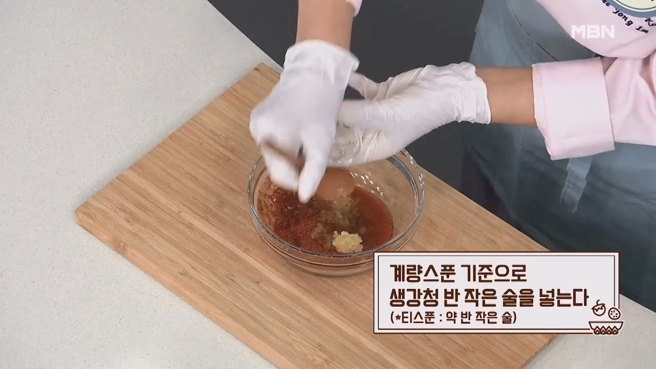 13. 계량스푼 기준으로 생강청 반 작은술을 넣습니다. (티스푼 약 반작은술)