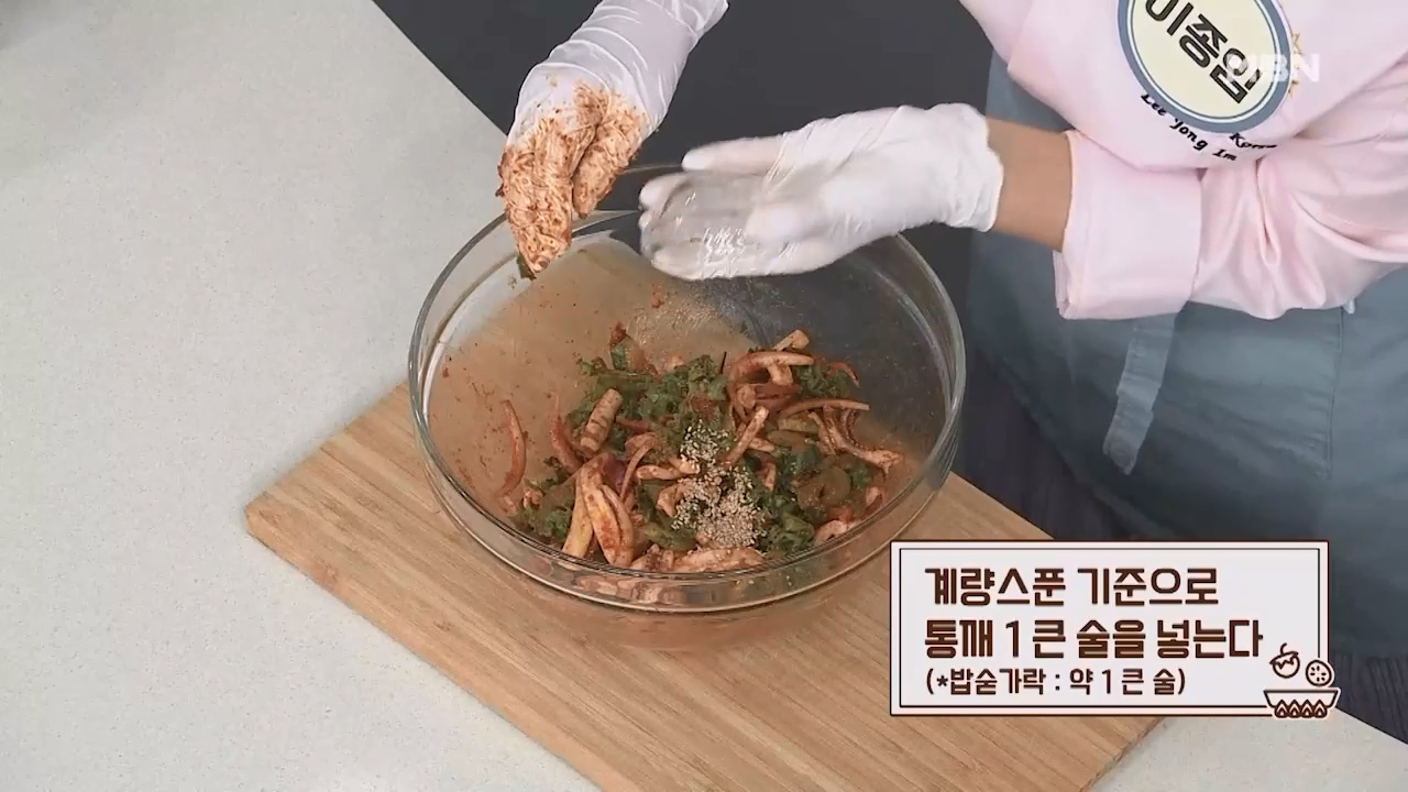 21. 계량스푼 기준으로 통깨 1큰술을 넣어주면 맛있는 오징어초무침이 완성됩니다. (밥숟가락 약 1큰술)