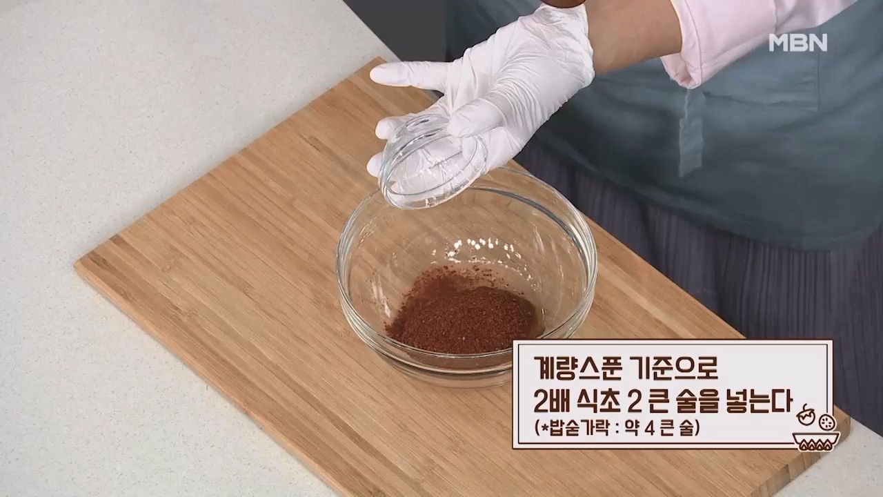 2. 계량스푼 기준으로 식초 1큰술을 넣습니다. (밥숟가락 약 2큰술)