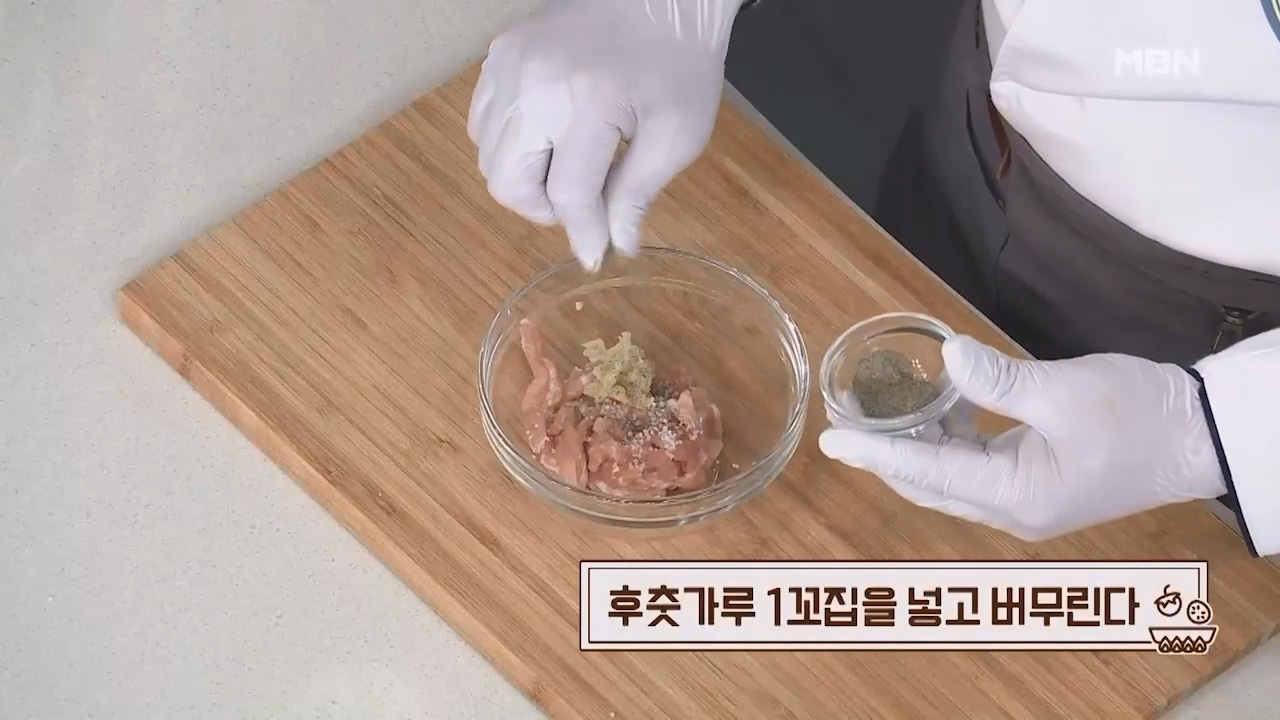 6. 후춧가루 1꼬집을 넣고 버무립니다.