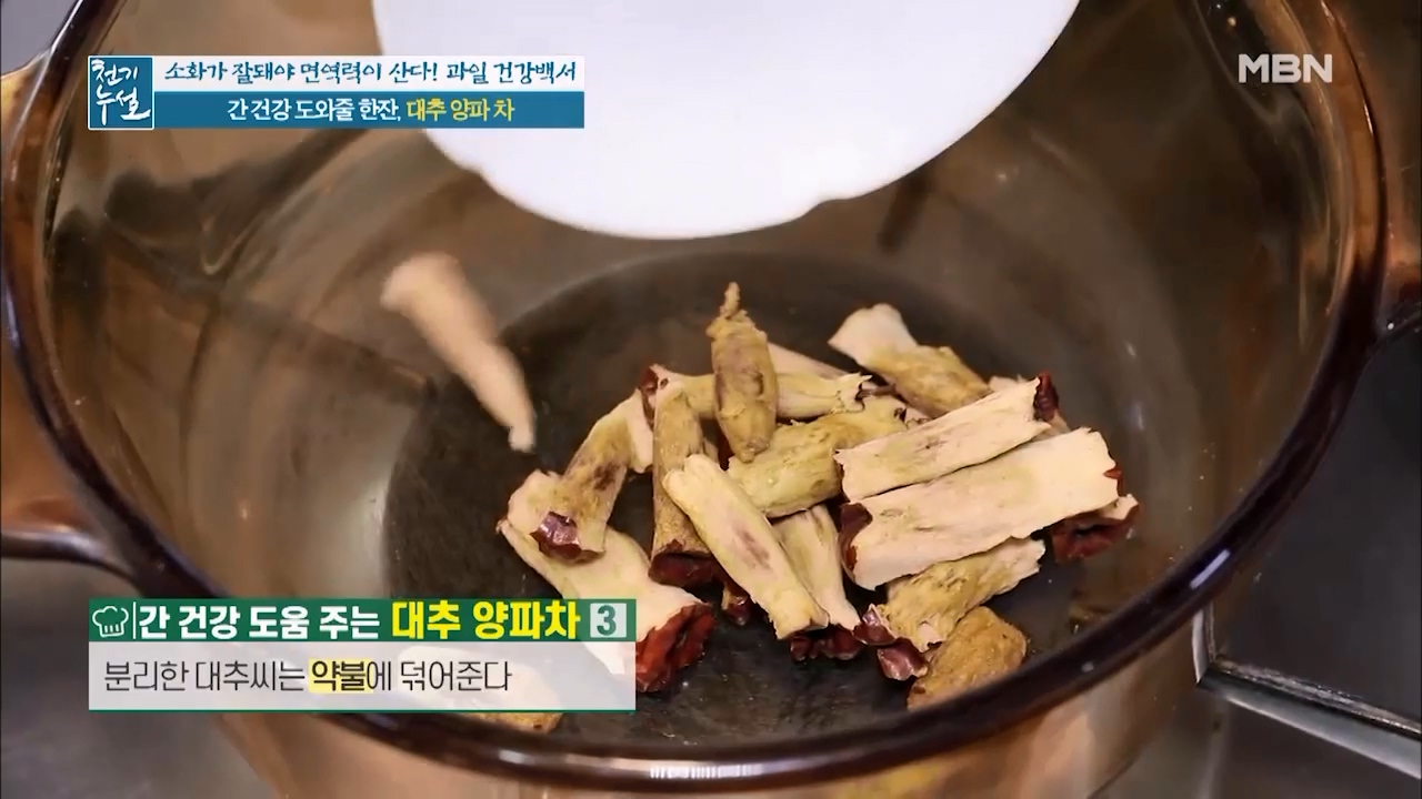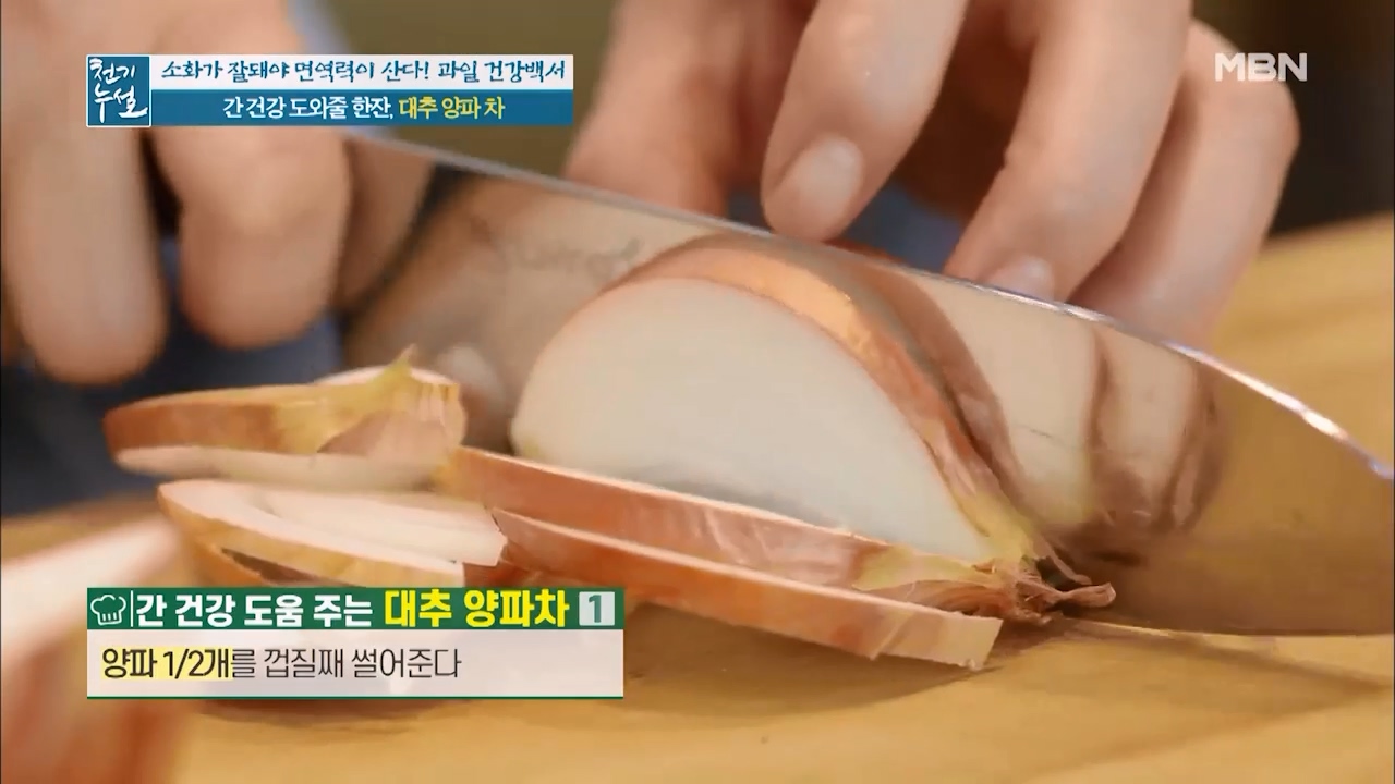천기누설에서 알려준 간 건강에 좋은 대추양파차 만드는법 알아보겠습니다. 대추차에 양파를 넣으면 해독작용을 도울 뿐만 아니라 신진대사를 도와 간 기능을 보호하는데 시너지 효과를 낼 수 있다고 합니다. 그리고 대추와 양파를 함께 섭취하면 지방간을 줄이는데 도움이 될 수 있다고 하는데요. 양파 속 퀘르세틴 성분이 간 속 지질을 낮춰서 간에 축적된 지방을 분해하는데 시너지 효과를 낼 수 있다고 합니다. 연구에 의하면 대추와 양파 혼합 추출물을 섭취하였더니 간의 지방이 감소하였다고 합니다. 간 건강에 좋은 대추양파차 끓여드셔서 간 건강 지켜보세요.