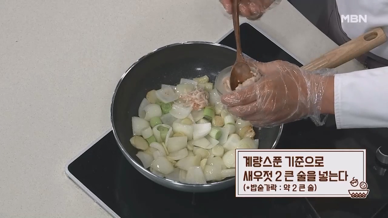 8. 계량스푼 기준으로 새우젓 2큰술을 넣습니다. (밥숟가락 약 2큰술)