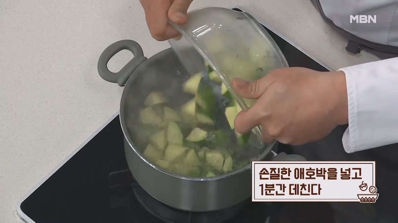 4. 손질한 애호박을 넣고 1분간 데쳐줍니다.