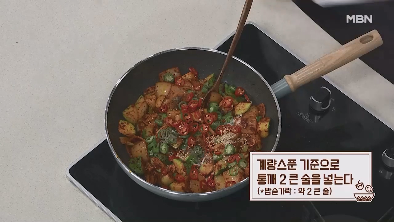 13. 계량스푼 기준으로 통깨 2큰술을 넣으면 맛있는 애호박새우젓볶음이 완성됩니다. (밥숟가락 약 2큰술)