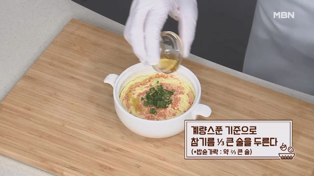 10. 계량스푼 기준으로 참기름 1/3큰술을 두르면 맛있고 간단한 달걀찜이 완성됩니다. (밥숟가락 약 2/3큰술)