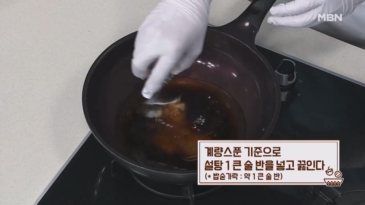 4. 계량스푼 기준으로 설탕 1큰술 반을 넣고 끓여줍니다. (밥숟가락 약 1큰술반)