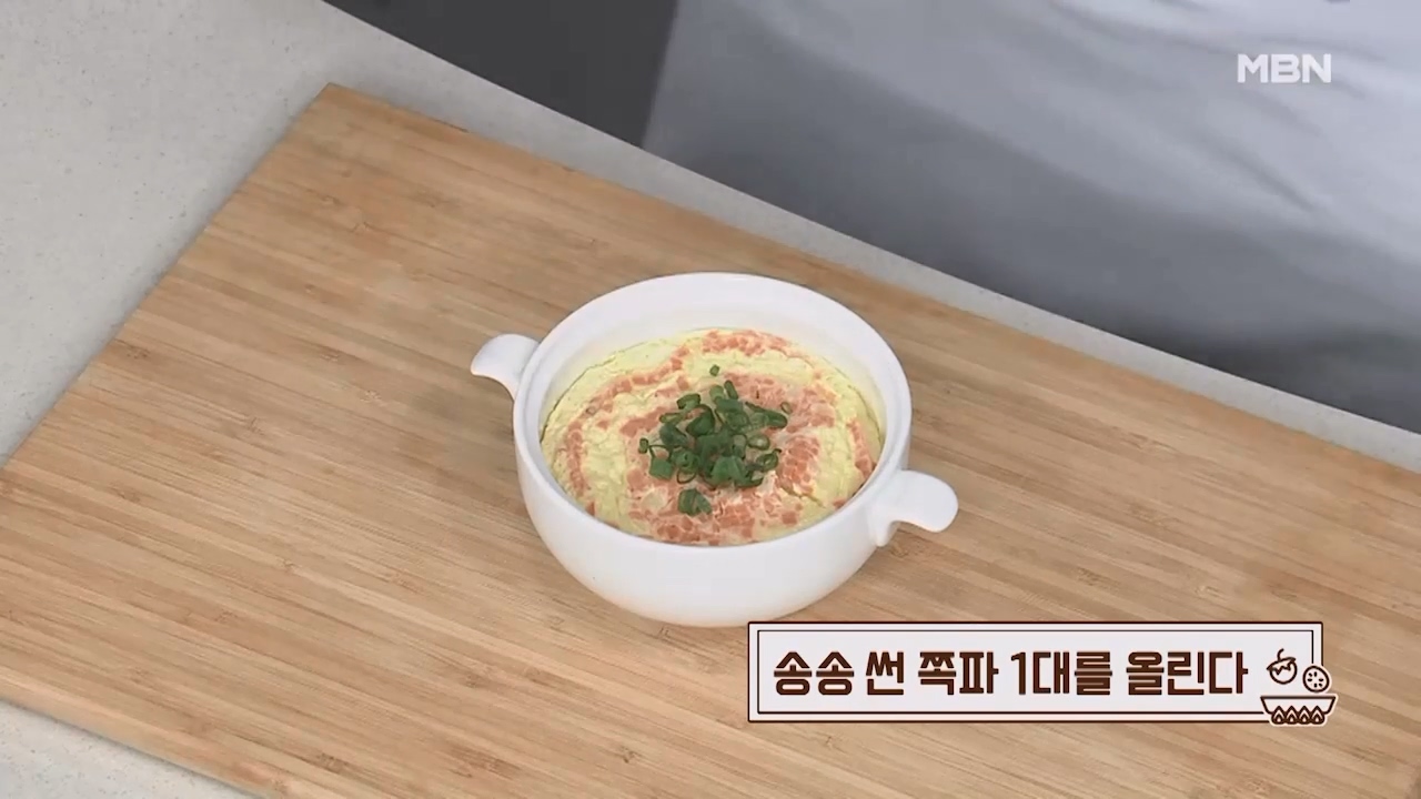 9. 계란찜 위에 송송 썬 쪽파 1대를 올립니다.