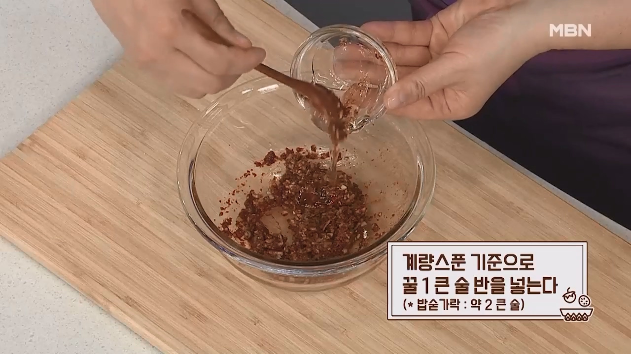9. 계량스푼 기준으로 꿀 1큰술 반을 넣습니다. (밥숟가락 약 2큰술)
