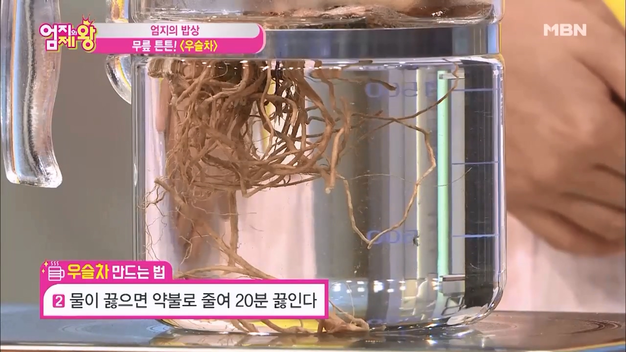 2. 물이 끓으면 약불로 줄여 20분 끓여주면 무릎 관절 효능 우슬차가 완성됩니다.