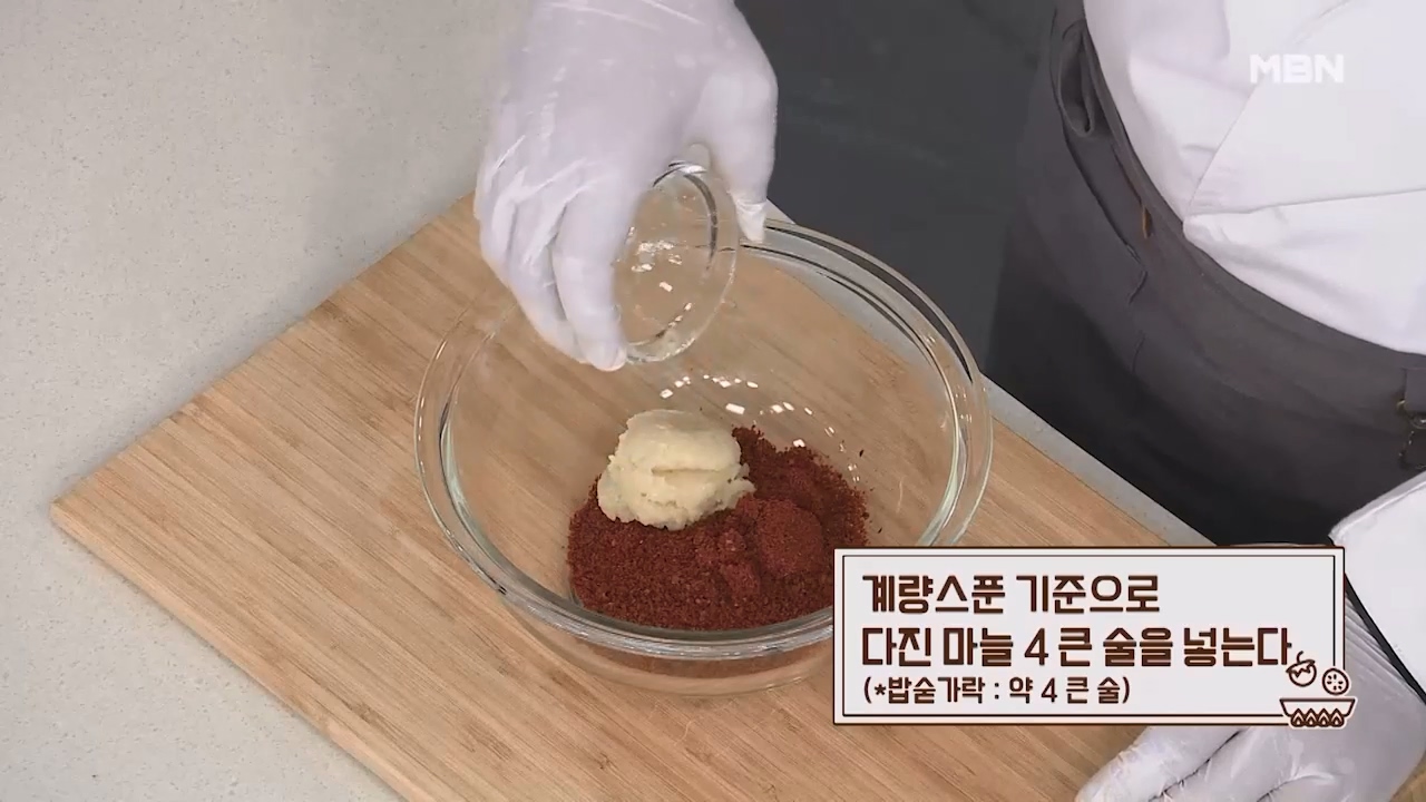 3. 계량스푼 기준으로 다진마늘 4큰술을 넣어줍니다. (밥숟가락 약 4큰술)