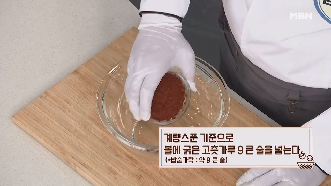 2. 볼에 계량스푼 기준으로 굵은 고춧가루 9큰술을 넣어줍니다. (밥숟가락 약 9큰술)