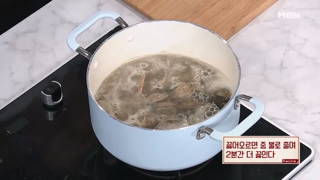 8. 다시마 2장과 바지락 25개를 넣습니다.