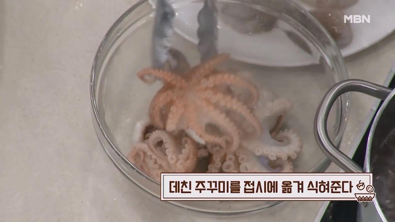 4. 데친 쭈꾸미를 접시에 옮겨 식혀줍니다.