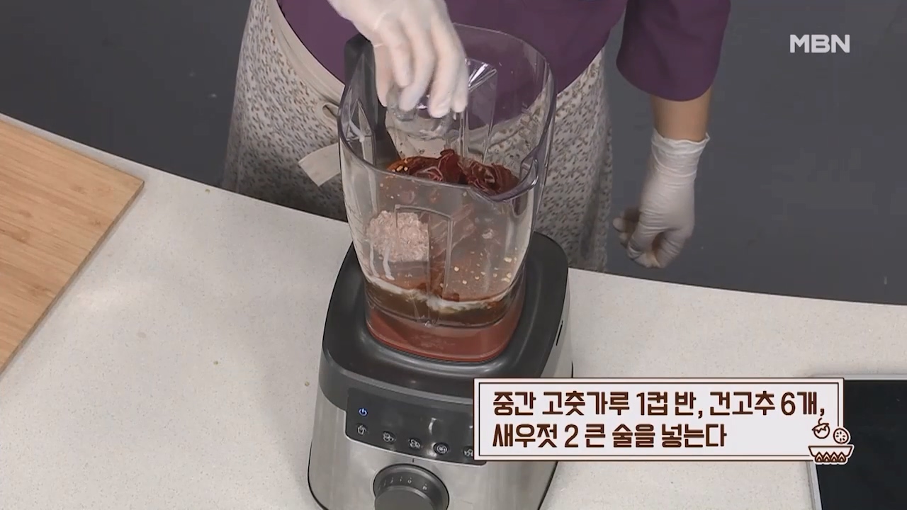 7. 중간 고춧가루 1컵반, 건고추 6개, 새우젓 2큰술을 넣어줍니다.