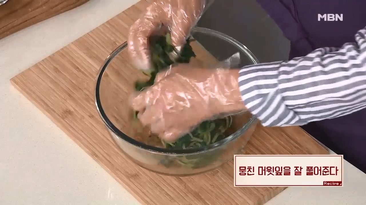 4. 뭉친 머윗잎을 잘 풀어줍니다.