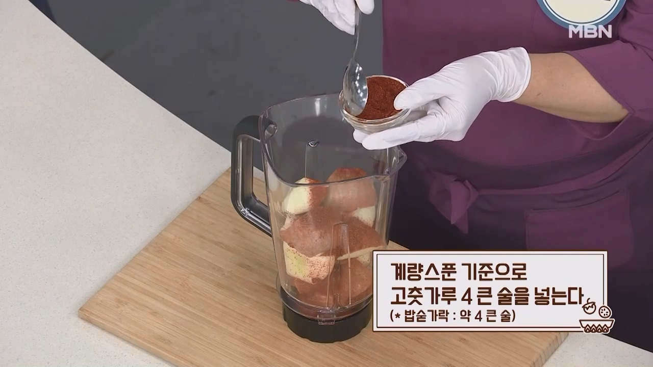 8. 계량스푼 기준으로 고춧가루 4큰술을 넣어줍니다. (밥숟가락 약 4큰술)