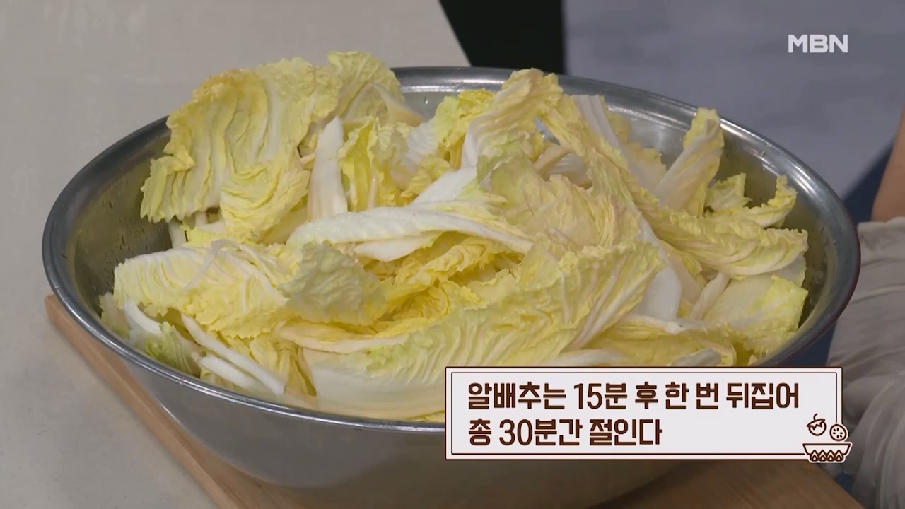 4. 알배추는 15분 후 한번 뒤집어 총 30분간 절입니다.