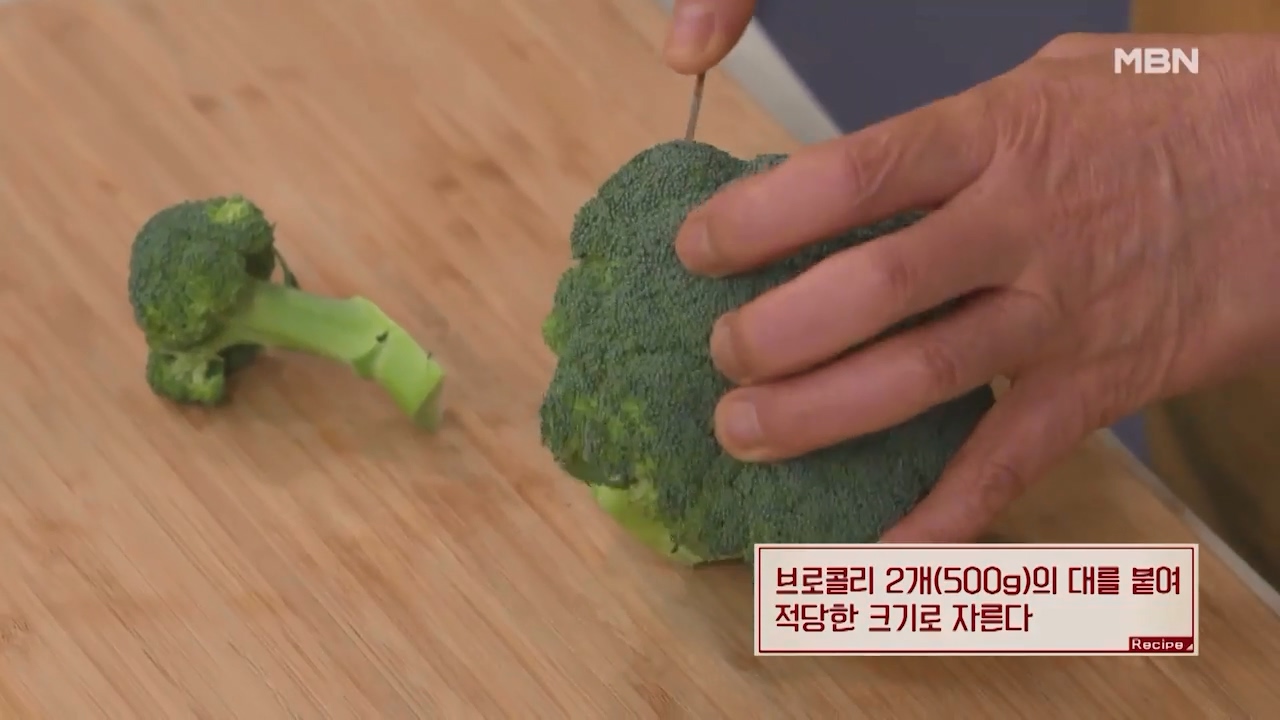 4. 브로콜리 2개(500g)의 대를 붙여 적당한 크기로 잘라줍니다.