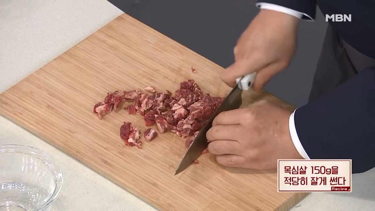 1. 목심살 150g을 적당히 잘게 썰어줍니다.