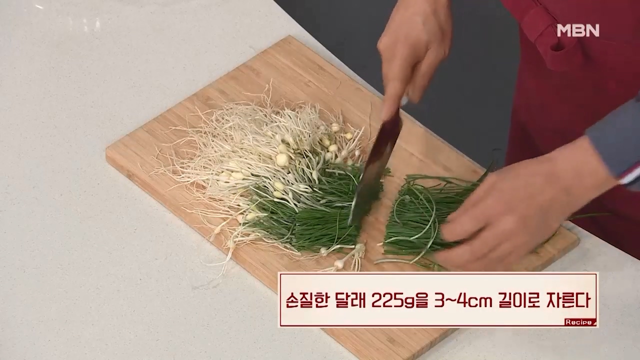 2. 달래를 먹기 좋은 크기로 썰어줍니다. (달래 양은 기호에 따라 조절합니다.)
