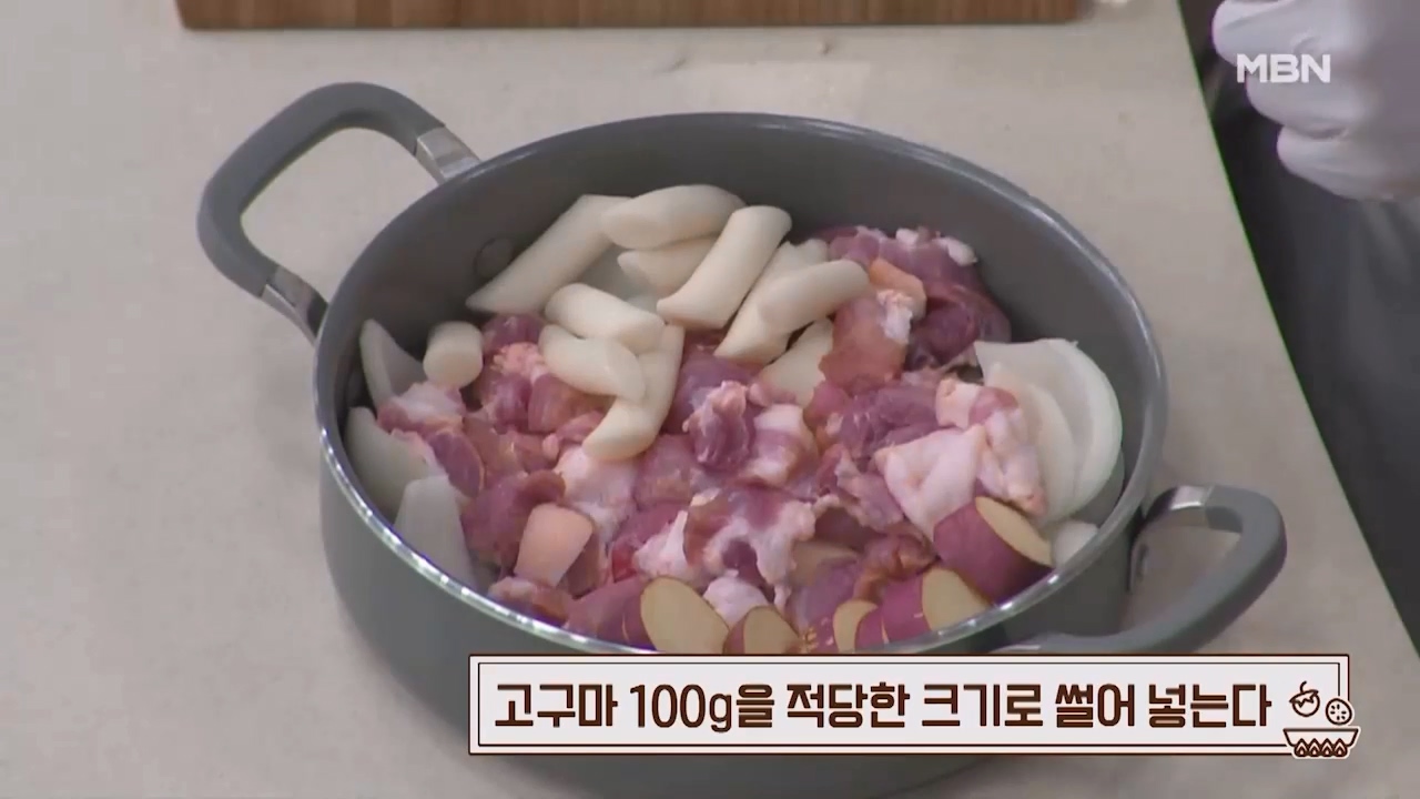 11. 고구마 100g을 적당한 크기로 썰어 넣어줍니다.