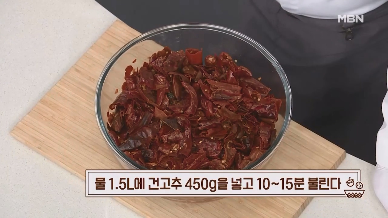 3. 물 1.5리터에 건고추 450g을 넣고 10~15분 불려줍니다.