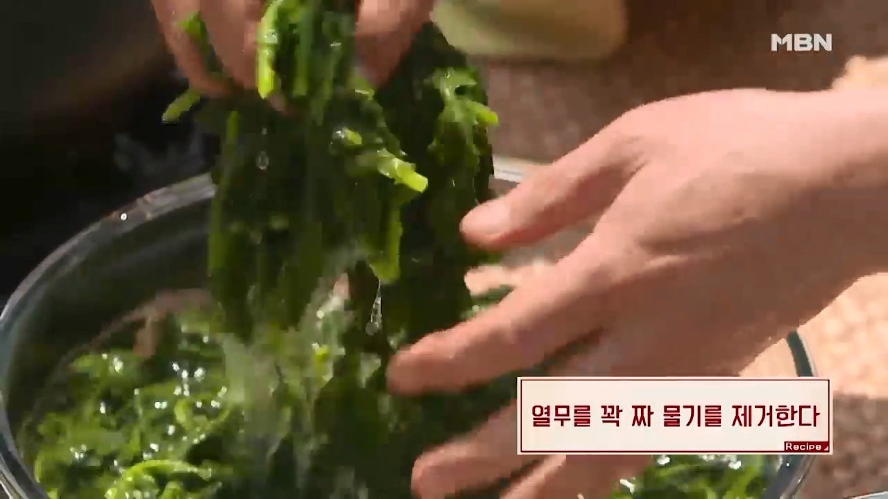4. 열무를 꽉 짜 물기를 제거합니다.