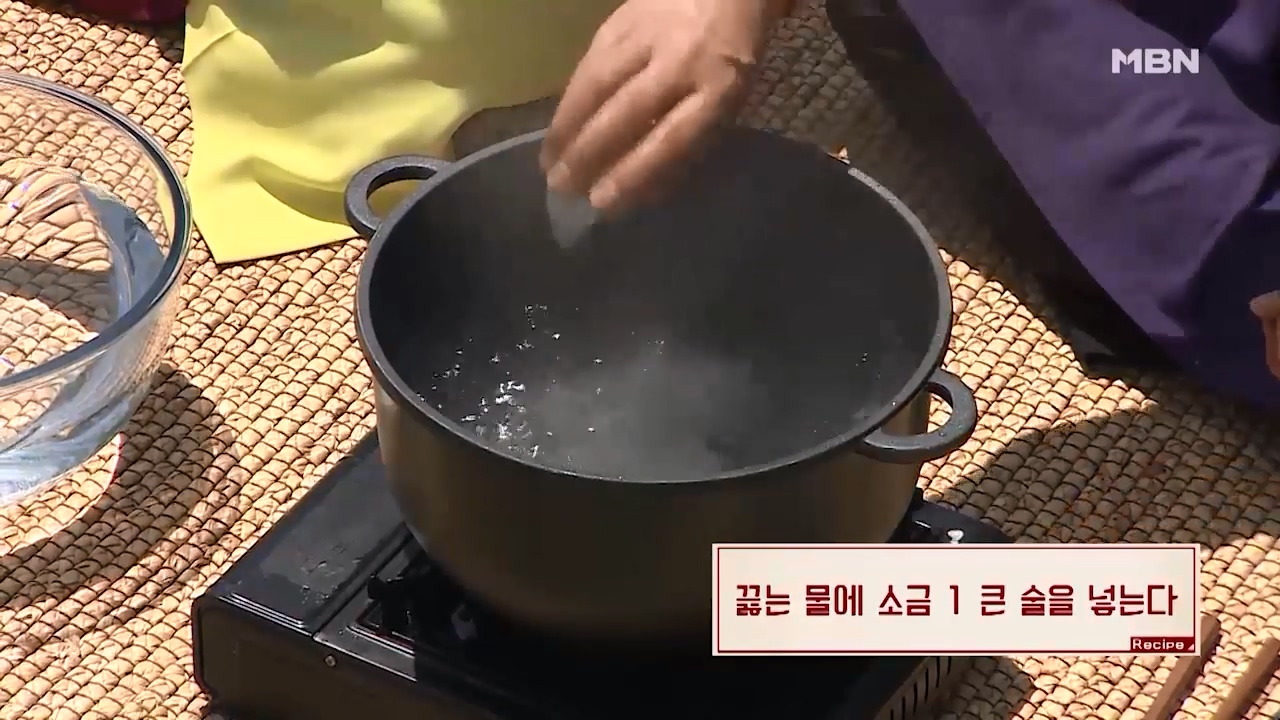1. 끓는물에 소금 1큰술을 넣습니다.