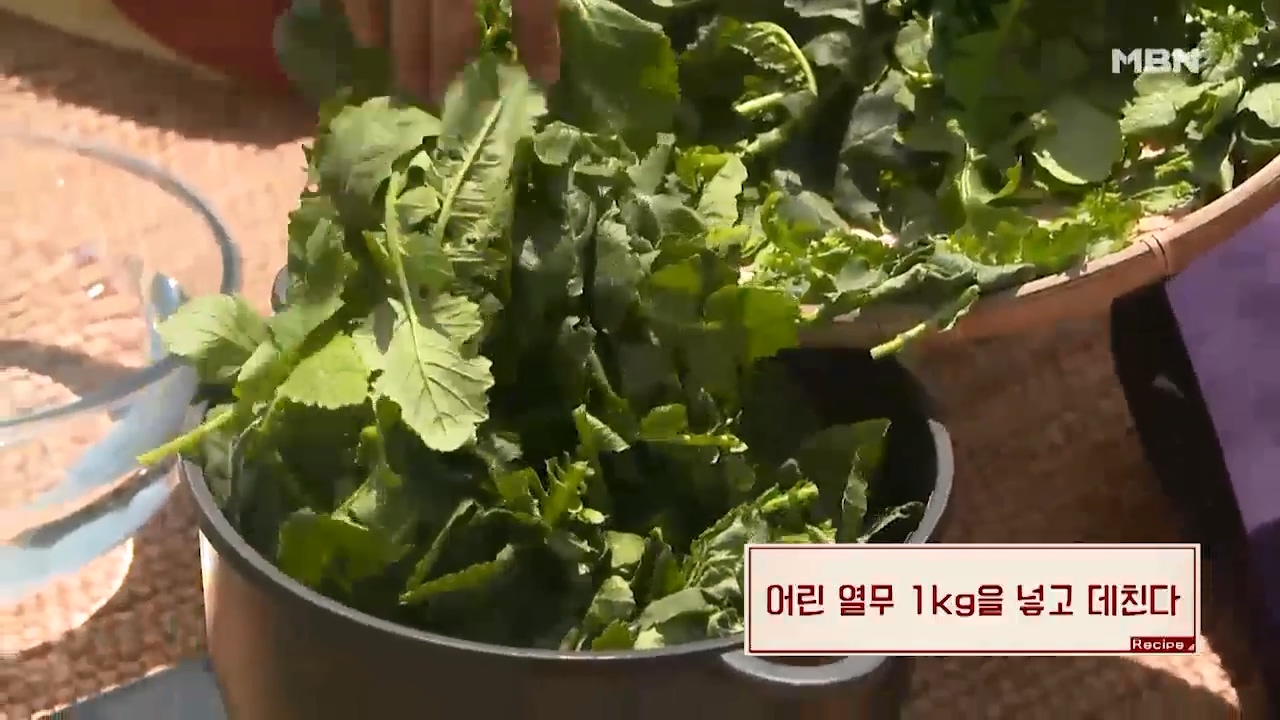 2. 어린 열무 1kg을 넣고 데쳐줍니다.