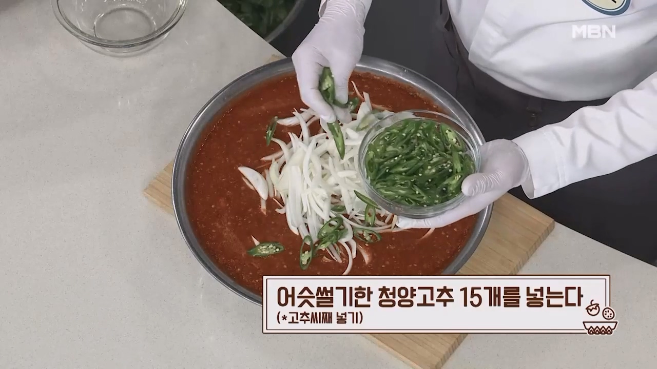 10. 어슷썰기한 청양고추 15개를 넣어줍니다. (고추씨째 넣어줍니다.)
