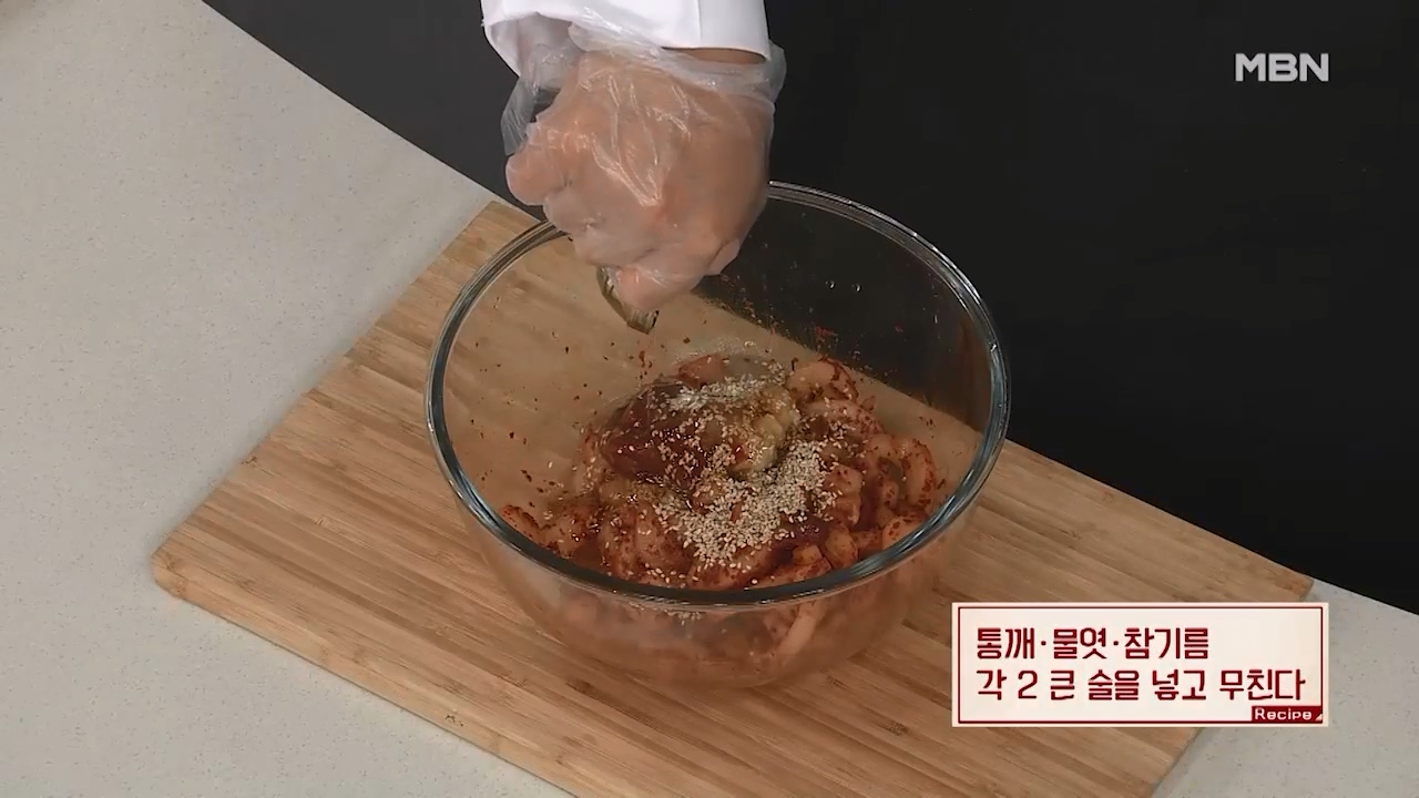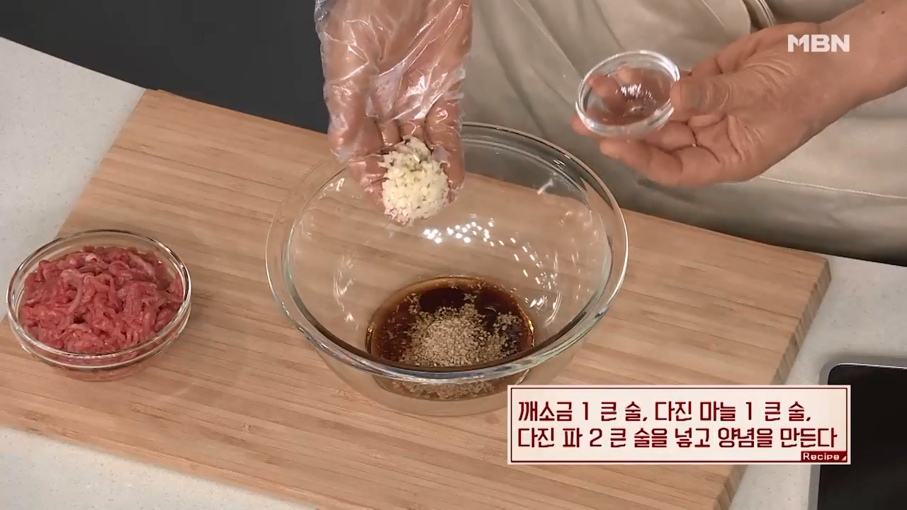 11. 깨소금 1큰술, 다진마늘 1큰술, 다진파 2큰술을 넣고 양념을 만듭니다.